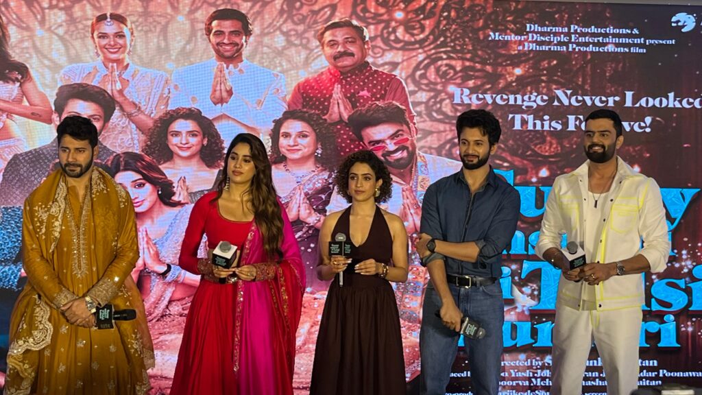 અમદાવાદ, સપ્ટેમ્બર 2025: બૉલીવુડના લોકપ્રિય નિર્માતા કરણ જોહરની નવી ફિલ્મ ‘સની સંસ્કારી કી તુલસી કુમારી’ની સ્ટારકાસ્ટ અમદાવાદની મહેમાન બની હતી. વરુણ ધવન, જાહ્નવી કપૂર, સાન્યા મલ્હોત્રા, રોહિત સરાફ અને મનીષ પૉલએ શહેરમાં ધામધૂમથી પ્રમોશનલ ઇવેન્ટમાં હાજરી આપી અને ફેન્સ સાથે ગરબાની પણ રમઝટ માણી. ધર્મા પ્રોડક્શન્સના બેનર હેઠળ બનેલ અને 2 ઓક્ટોબરે રિલીઝ થઈ રહેલી આ ફિલ્મએ દર્શકોમાં ભારે ચર્ચા જગાવી છે. ફિલ્મમાં હળવા રોમાંસ સાથે કોમેડી, કન્ફ્યુઝન અને ઇમોશન્સનું મિશ્રણ જોવા મળે છે. અમદાવાદ આવીને તેઓએ ગરબાની પણ રમઝટ માણી હતી.
