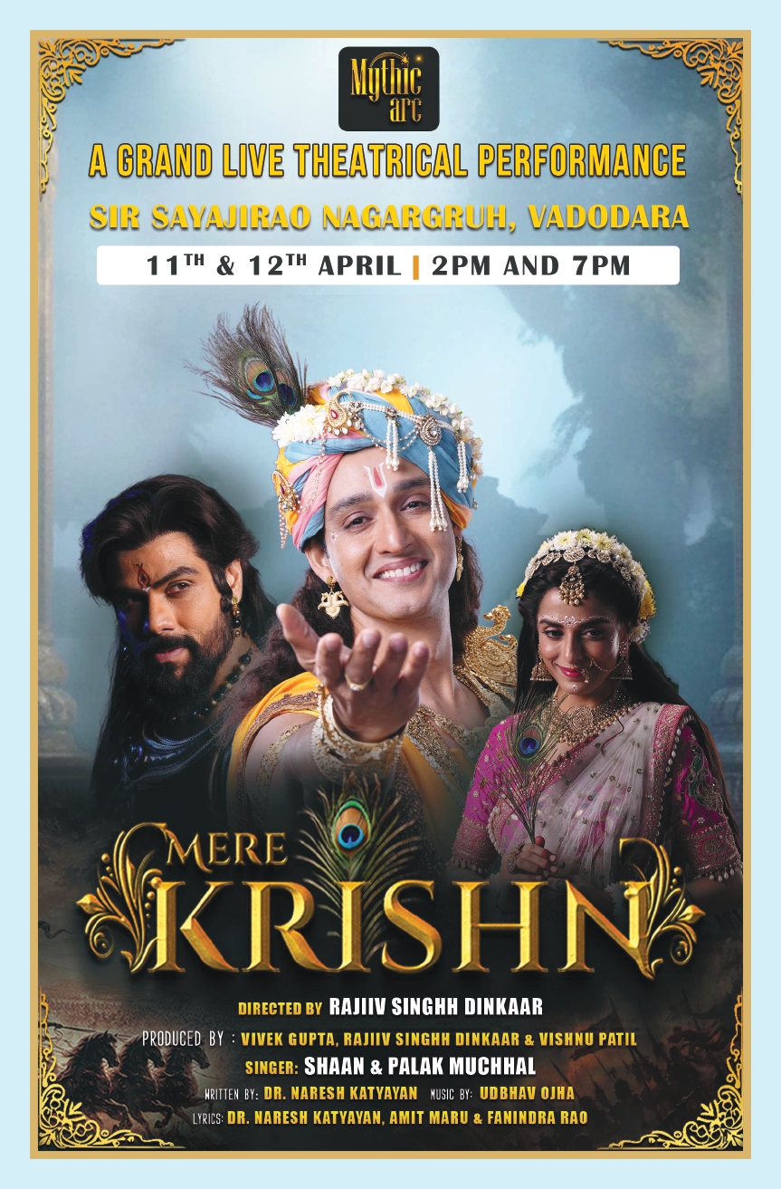 વડોદરા હવે ભક્તિ, નાટક અને દ્રશ્ય ભવ્યતાના એક અનોખા સંગમનું સાક્ષી બનવા જઈ રહ્યું છે. અત્યંત પ્રશંસા પામેલું મેગા થિયેટ્રિકલ પ્રોડક્શન “મેરે કૃષ્ણ” આગામી 11 અને 12 એપ્રિલ, 2026 ના રોજ પ્રતિષ્ઠિત સર સયાજીરાવ નાગરગૃહ ખાતે ચાર ભવ્ય શો સાથે રજૂ થશે. 11 અને 12 એપ્રિલ બંને દિવસ બપોરે 2-00 કલાકે અને સાંજે 7-00 કલાકે એમ કુલ 4 શો રાખવામાં આવ્યા છે.